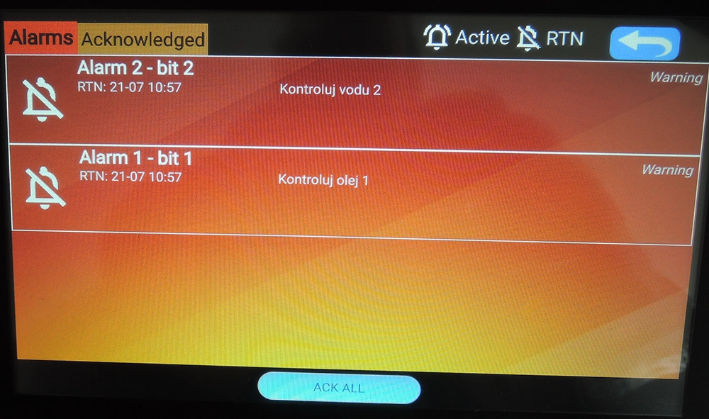 S tím se dá pohrát a nastavit podle potřeby, jen to není (jako téměř vždy) úplně ihned, alarmy pokaždé vyžadují trochu porozumění u jakéhokoliv HMI nebo PLC různých výrobců. Samozřejmě zde místo alarmového okna může být jen indikátor atd.