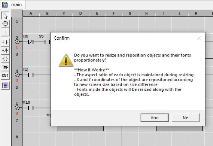 Faktická poznámka: Projekt, ne proměnné na kartě, se nijak nesynchronizuje s projektem v PLC, takže tady vypadá grafika klidně jinak, než máme na HMI. Grafika a obrazovky se nahrávají do PLC s projektem a pro nahrání na paměťovou kartu je nutné použít příslušný příkaz.