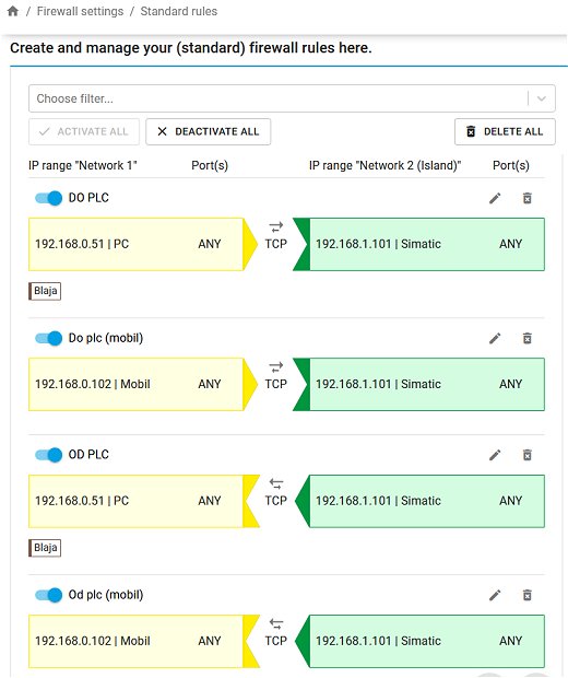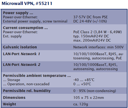 Microwall VPN je síťový modul pro oddělení zařízení v různých sítích a pro omezení Ethernet komunikace k různým zařízením. Umožní bezpečné připojení strojů do podnikové sítě Ethernet, připojení starších počítačů a dalších zařízení v síti. Můžeme nastavit Ethernet komunikaci k PLC systémům, např. povolení portu pouze pro OPC UA komunikaci, pro čtení dat do výrobního systému apod. Nastavení je proto velmi široké a univerzální a závisí na konkrétní aplikaci a situaci na síti.
