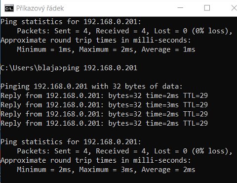 Vyzkoušíme si i ping na tuto adresu. Vše je v pořádku.