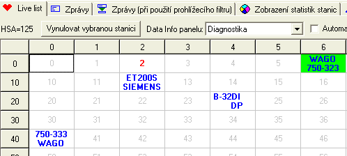 Zobrazení signálů a poruch PROFIBUSu