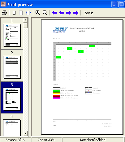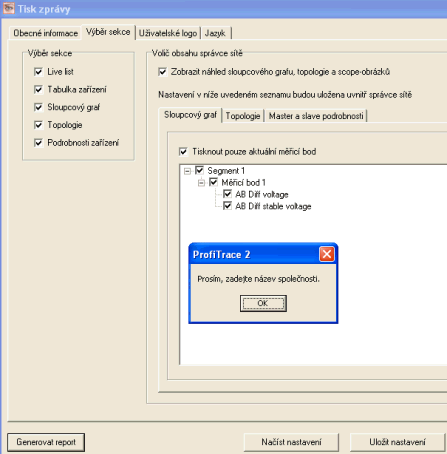 K vygenerování závěrečné zprávy slouží menu Zpráva -> Generovat report. Můžete si zvolit všechno možné i nemožné co se do reportu zahrne, hlavně nesmí chybět v hlavičce název společnosti, bez vyplněné hlavičky se generování nespustí.