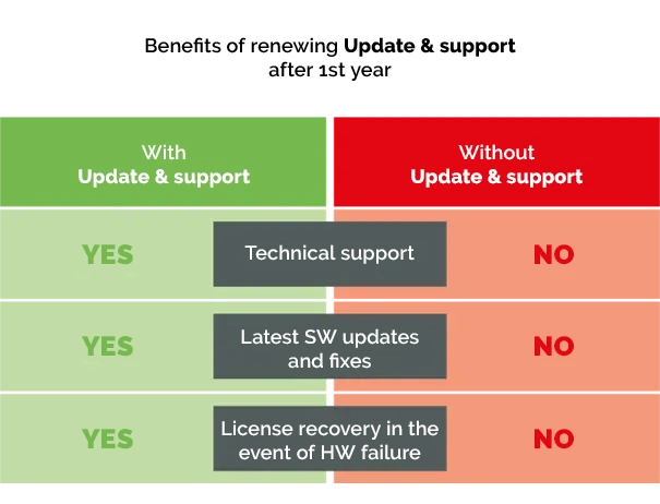 The option to renew Technical Support for customers who have not been paying for Technical Support for more than one year will only be available until December 31, 2024. From January 1, 2025, you will no longer be able to renew it, but will only be able to purchase a new perpetual license or a subscription license (at the favorable terms described above).