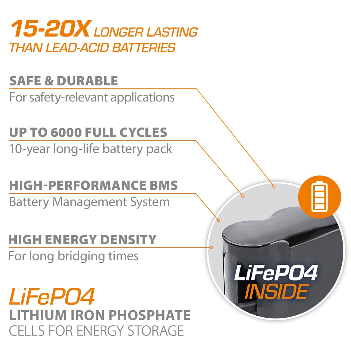 - Tecnología LiFePO4 — Máxima fiabilidad